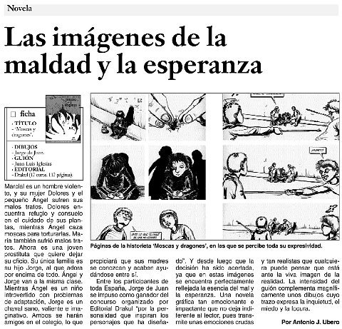 Moscas y dragones, el cómic de Juan Luis Iglesias y Jorge de Juan, sigue muy vigente. Y es porque, por desgracia, el tema de la violencia de género no pasa de moda. Es una asignatura pendiente que la sociedad sigue sin resolver.