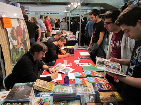 Francisco Maldonado y Vicente Cifuentes firmando sus obras en Expocomic 2013
